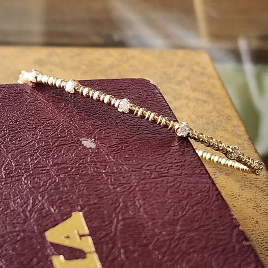 Simple yet Stunning! The combination of Diamonds and Gold Beads is just elegant! This 14kt yellow Gold and 7 Diamond Flex Bangle is great for everyday wear or in a stack!